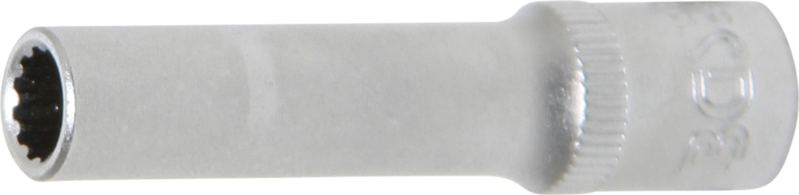 mit Rändelung Technische Daten Verpackung für Wandbehang geeignet Ja Oberflächenvergütung Verchromt matt Antriebsprofilgröße imperial 14 Abtriebsprofil Gear Lock Multiprofil Schlüsselweite 6 mm Antriebsprofilgröße metrisch 63 mm Material Chrom-Vanadium-Stahl Antriebsprofil Innenvierkant Bruttogewicht 20 g