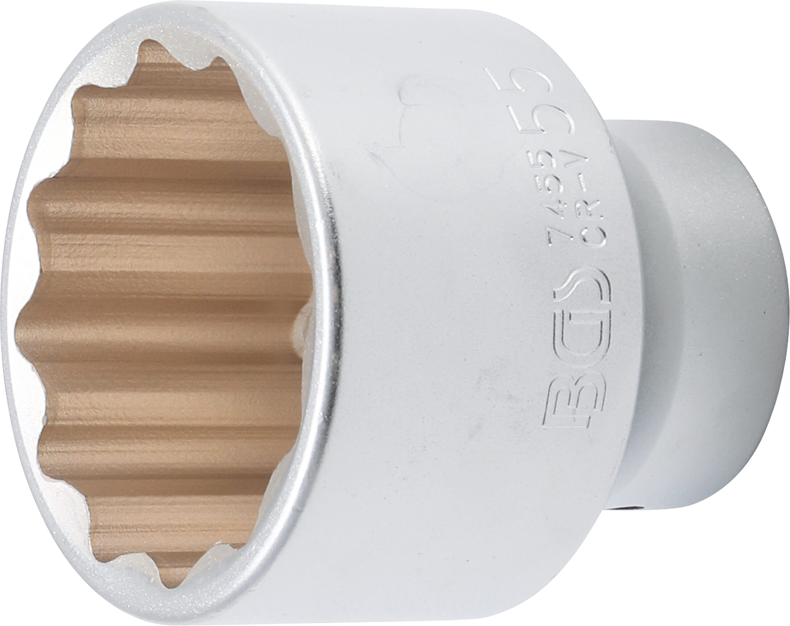 Technische Daten Abtriebsprofil Zwölfkant Schlüsselweite 55 mm Material Chrom-Vanadium-Stahl Oberflächenvergütung Verchromt matt Bruttogewicht 874 g Antriebsprofilgröße metrisch 20 mm Antriebsprofilgröße imperial 34 Antriebsprofil Innenvierkant