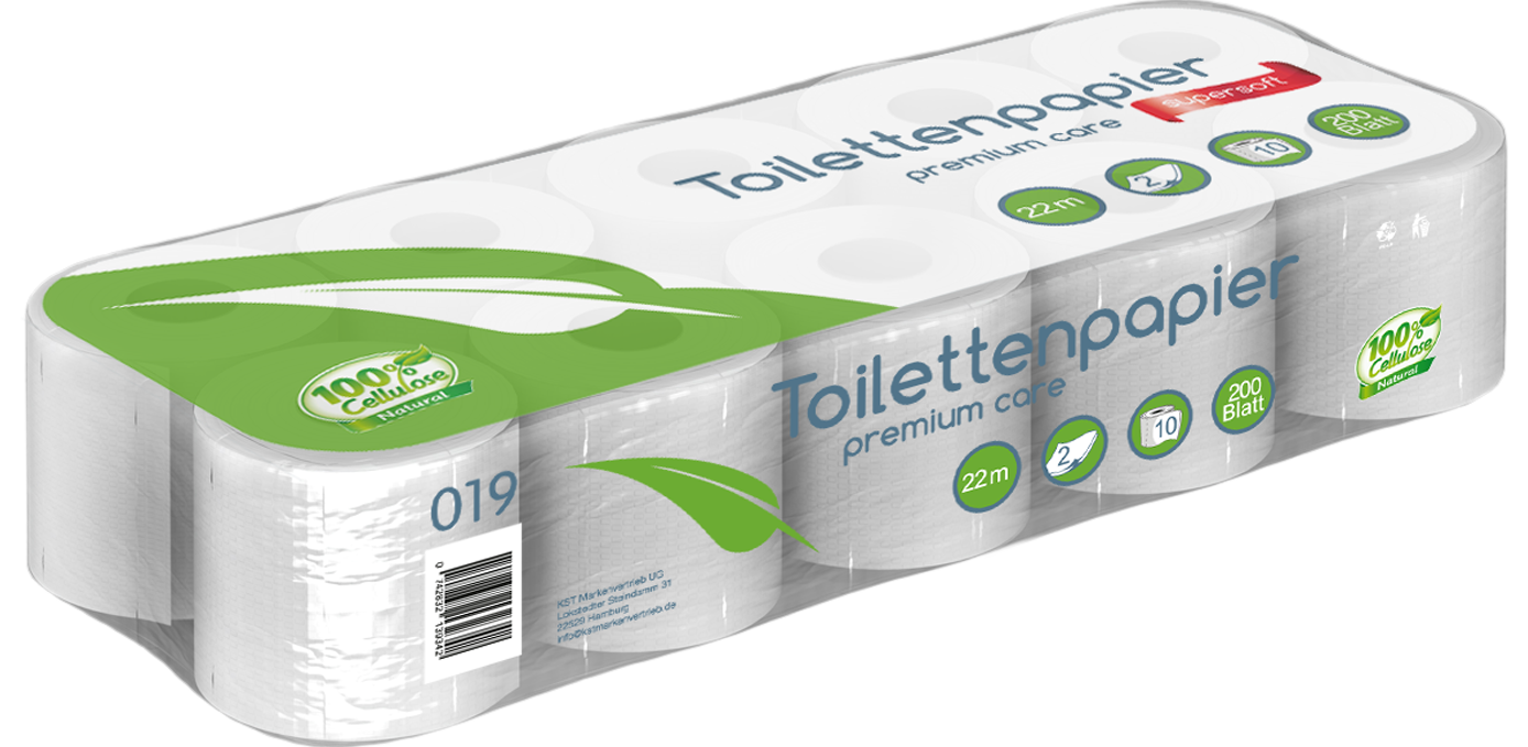 100 % Zellstoff TOP QUALITÄT Hochweiß aus bestem Zellstoff. Absolutes Spitzenprodukt Sehr weiche und feste Qualität Flächenverleimung und Motivprägung 1 VE10 Rollen