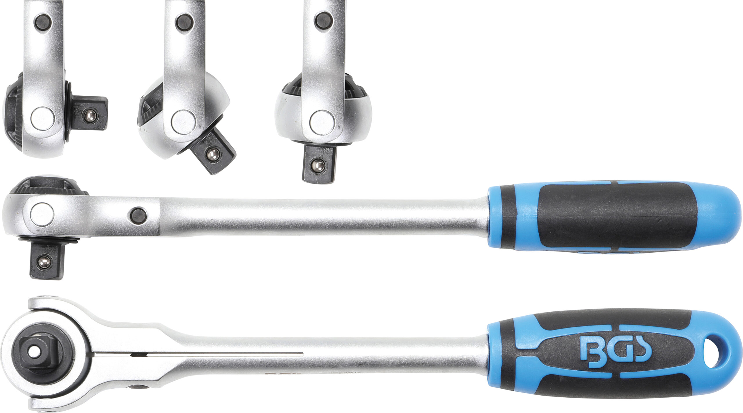 Antriebskopf 180 stufenlos einstellbar dadurch in fast allen Arbeitspositionen einsetzbar hochglanzverchromt feinverzahnt mit 72 Zähnen mit Einsatz-Schnelllöser Technische Daten Bruttogewicht 690 g