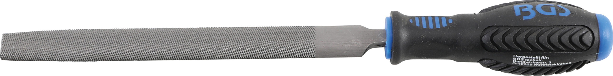 DIN 7261 – E 150 – 1 Form E Hieb 1 grob halbrunde Feile mit Hieb auf zwei Seiten und Angel kräfteschonendes Arbeiten durch spatenförmig ausgebildete Feilzähne Universell einsetzbar z.B. zur Flächenbearbeitung Entgraten usw. rutschsicherer 2-Komponenten-Griff Länge 150 mm ohne Griff Technische Daten Verpackung für Wandbehang geeignet Ja Bruttogewicht 190 g DIN 7261 Länge 150 mm