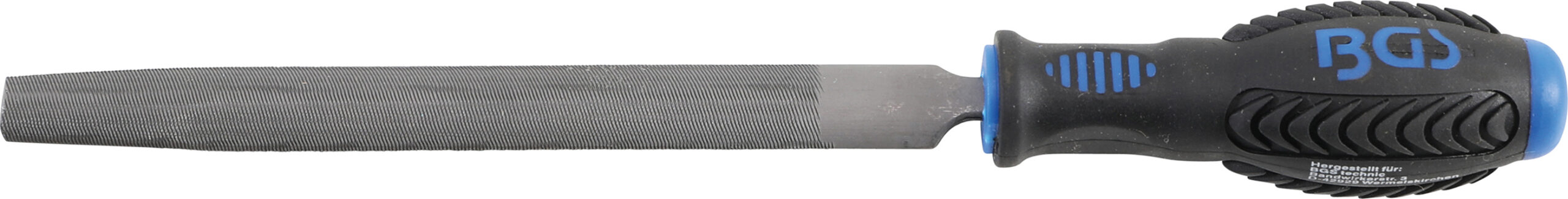 DIN 7261 – E 150 – 2 Form E Hieb 2 mittel halbrunde Feile mit Hieb auf zwei Seiten und Angel kräfteschonendes Arbeiten durch spatenförmig ausgebildete Feilzähne Universell einsetzbar z.B. zur Flächenbearbeitung Entgraten usw. rutschsicherer 2-Komponenten-Griff Länge 150 mm ohne Griff Technische Daten Bruttogewicht 190 g DIN 7261 Länge 150 mm Verpackung für Wandbehang geeignet Ja